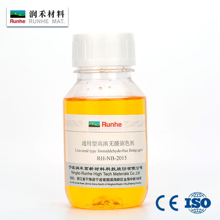 Concentrated Formaldehyde-free Fixative RH-NB-2015, is a high-weight cationic polymer, applied in colour fixture of reactive dyes, and direct dyes for the dyed textiles. It can acquire excellent colour fastness to washing.